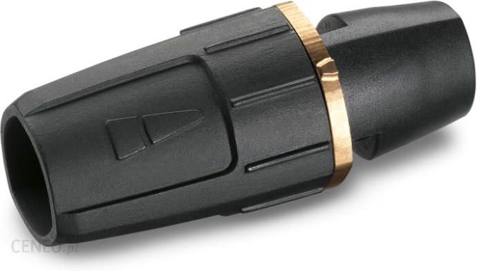 Szybkie i wygodne przełączanie strumienia dyszy. Możliwość wyboru pomiędzy wysokociśnieniowym strumieniem punktowym (0°), płaskim (25°) oraz niskociśnieniowym strumieniem płaskim (40°). W urządzeniach z inżektorem płaski strumień niskociśnieniowy służy do zasysania i nanoszenia środka czyszczącego. Złącze M 18 x 1,5.