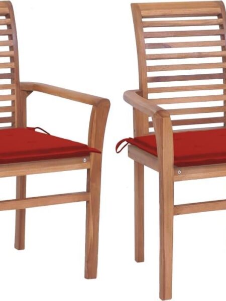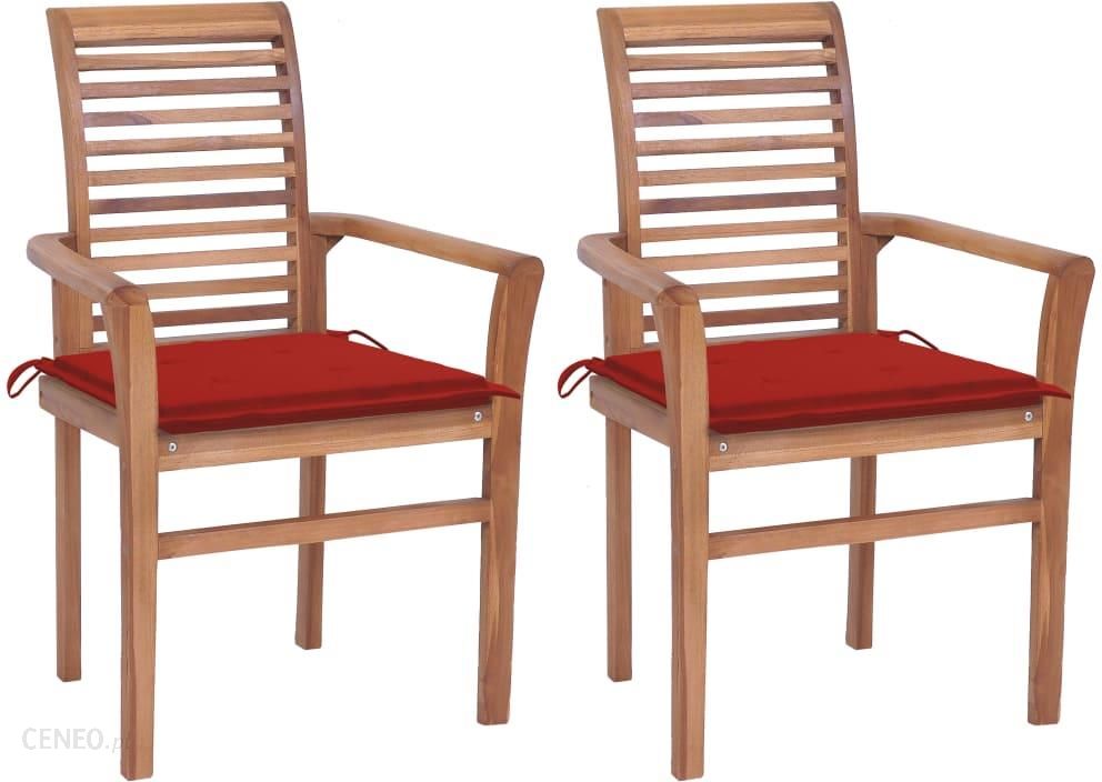 Krzesła Stołowe, 2Szt. Czerwone Poduszki Drewno Tekowe