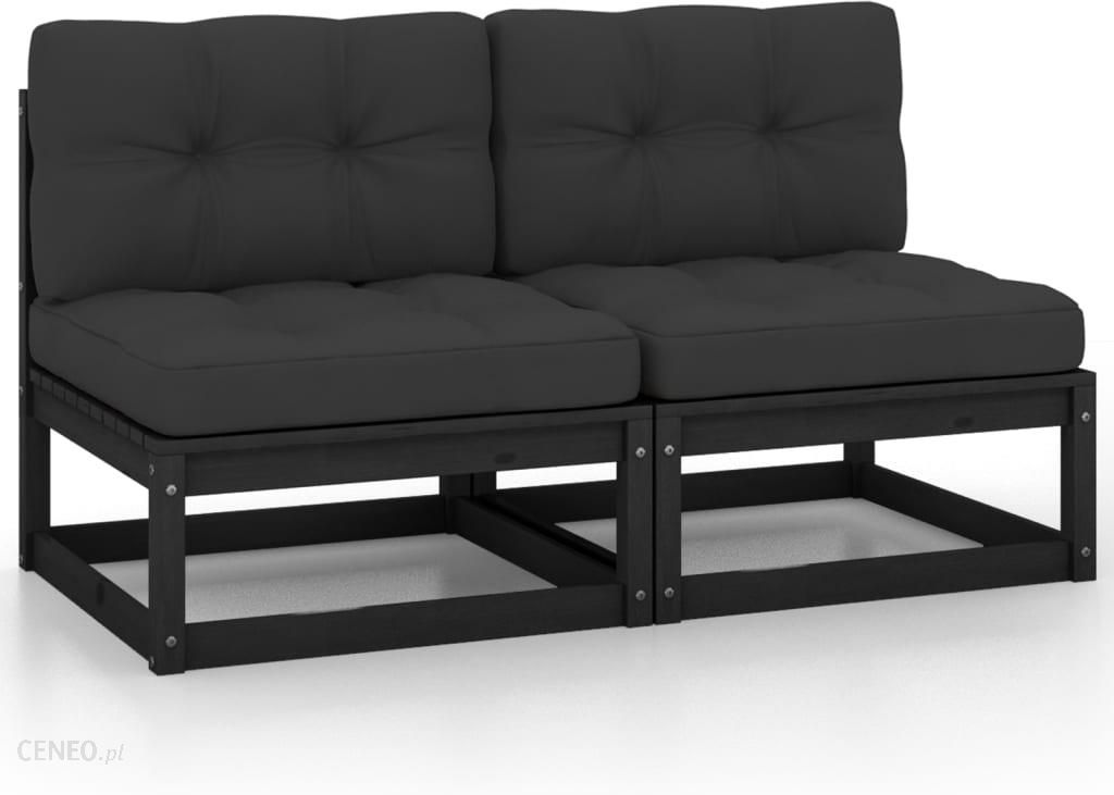 Kolor: czarny Kolor poduszki: antracytowyMateriał: lite drewno sosnowe, tkanina (100% poliester)Wymiary: 70 x 70 x 67 cm (szer. x gł. x wys.)Wymiary poduszki na siedzisko: 58 x 58 x 10 cm (dł. x szer. x gr.)Wymiary poduszki na oparcie: 50 x 40 x 12 cm (dł. x szer. x gr.)Wymagany montaż: takZawartość paczki:2 x sofa środkowa2 x poduszka na siedzisko 2 x poduszka na oparcie