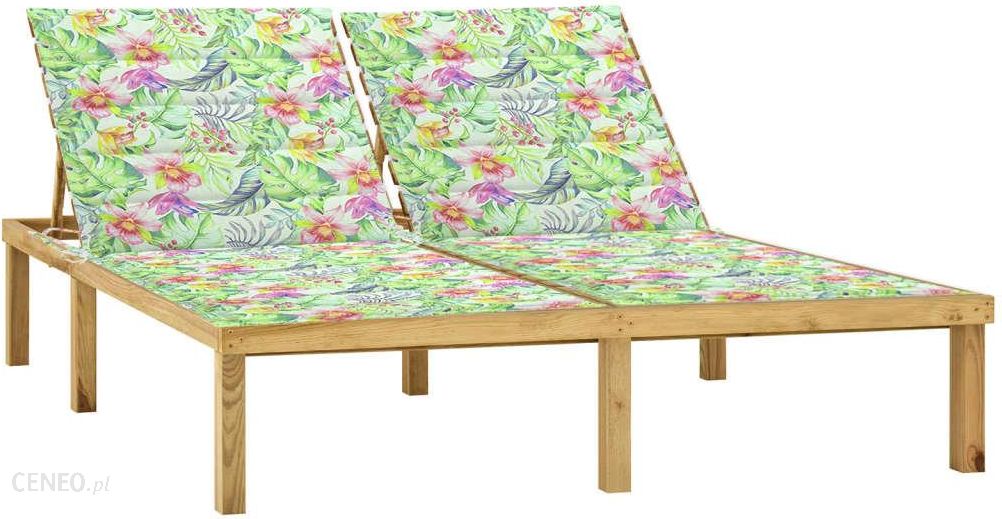 vidaxL Leżak podwójny z poduszkami w liście impregnowana sosna